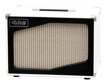 As an optional extra, all cabinets can be made with custom vinyl, grille cloth, or both. Except for the standard black, a few different kinds of vinyl (at the moment white, red and tweed pattern) are always in stock, 24 other ones can be ordered (additional waiting time for special orders). For grille cloth, there are five different kinds of vinyl available for the frame (six for special vinyl) as well as six options for the cloth, a total of over 1000 different looks. Here's just one example: